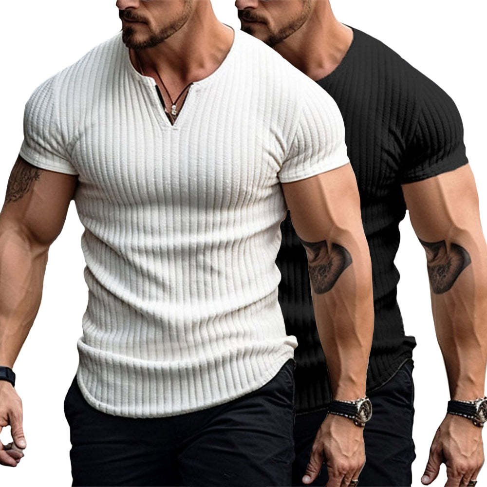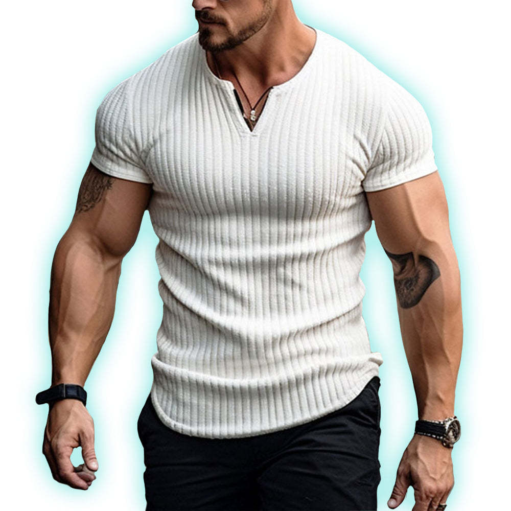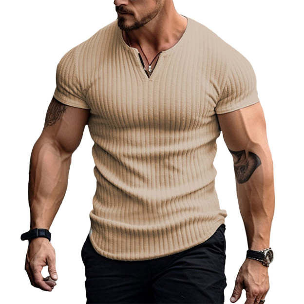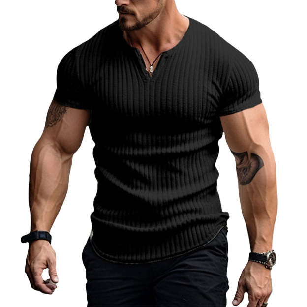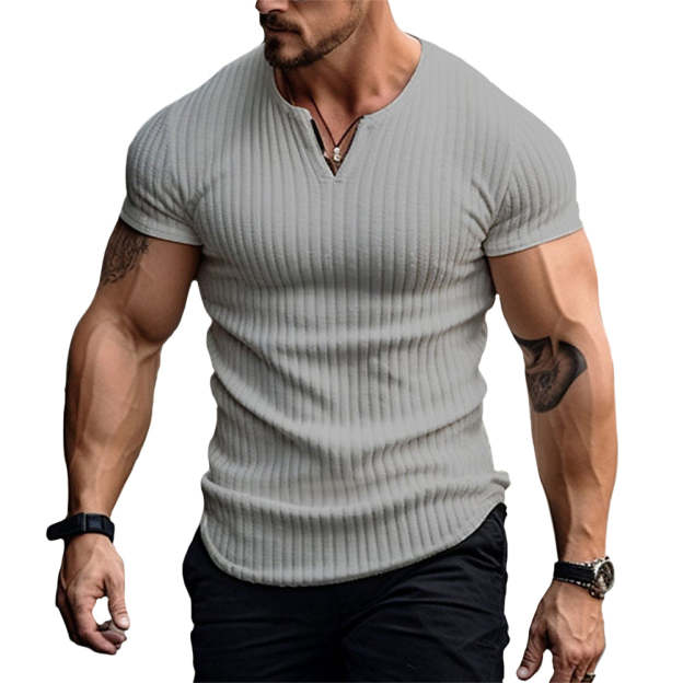 The handsome v-neck adds versatility to the design, offering an extra layer of sophistication to the shirt.