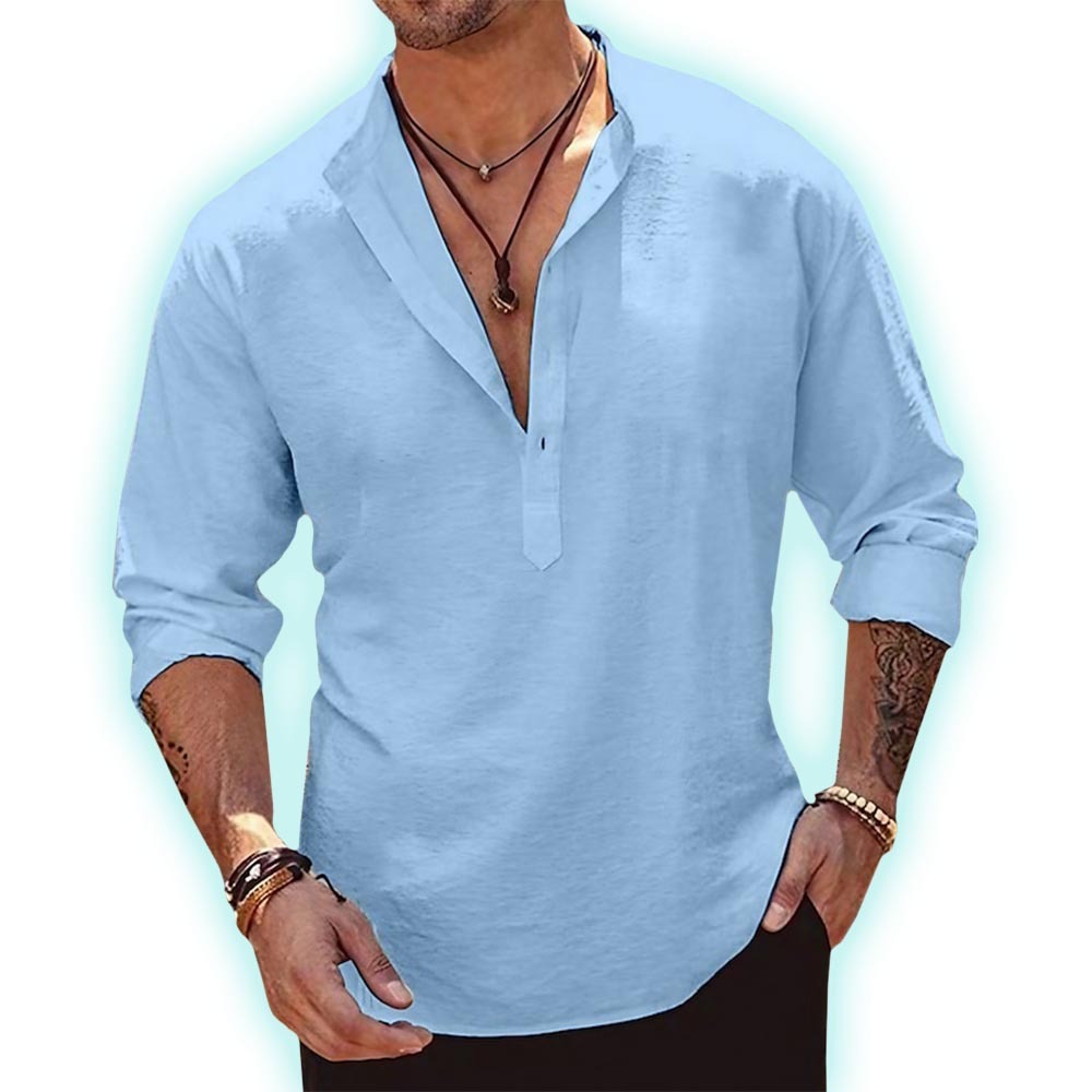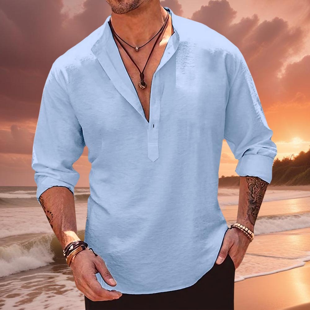 With each stitch, our linen shirt embodies understated sophistication, seamlessly combining the crisp natural texture of linen with the soft breathable embrace of cotton. The result? A garment that looks and feels amazing.