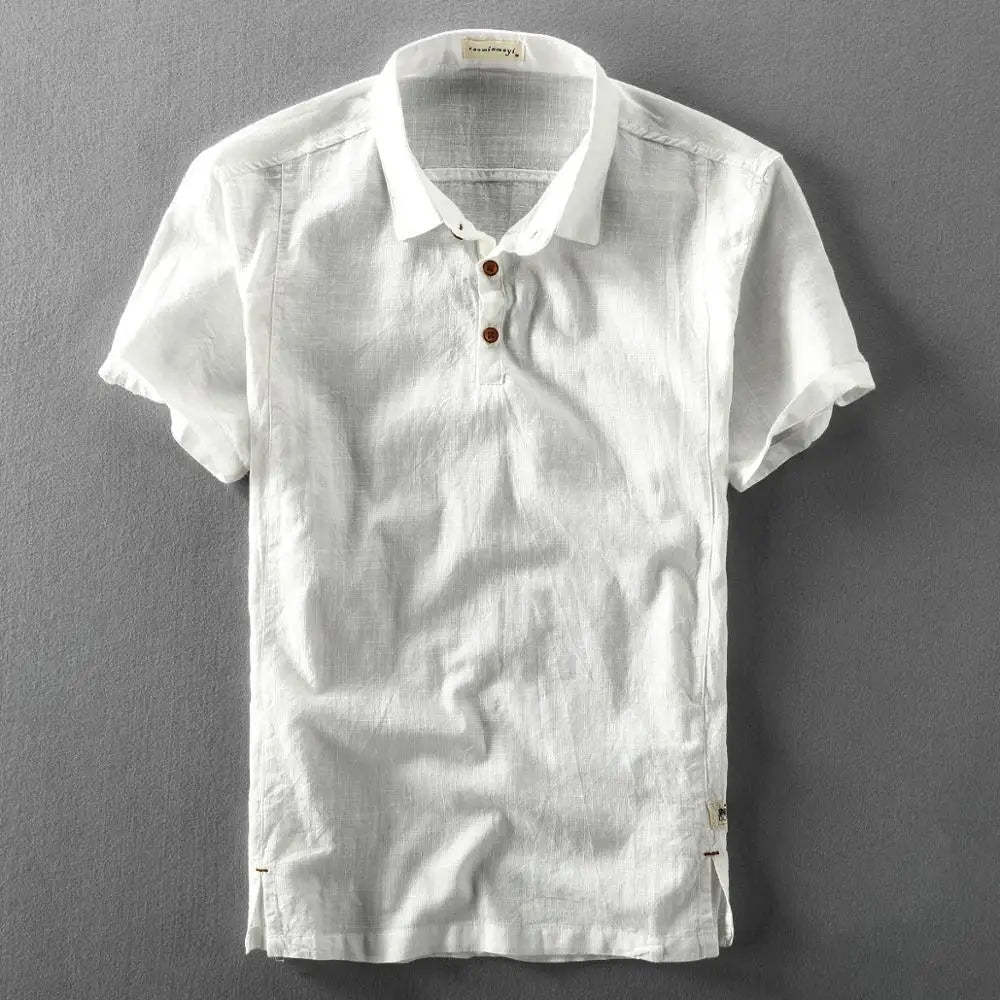 Thoughtfully Cut from a ultra-soft cotton-linen blend, this handsome shirt delivers breathable comfort with a refined, laid-back charm. A minimal three-button placket and turn-down collar enhance its relaxed tailoring. Ideal for summer days, beach outings, or casual evenings out.