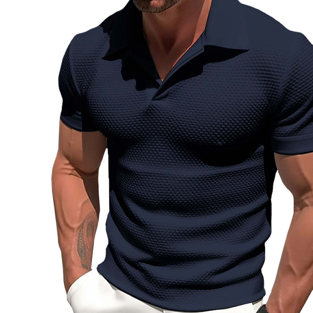 The iteration boasts a zipped opening at the collar, dropped shoulders, and short-length sleeves.